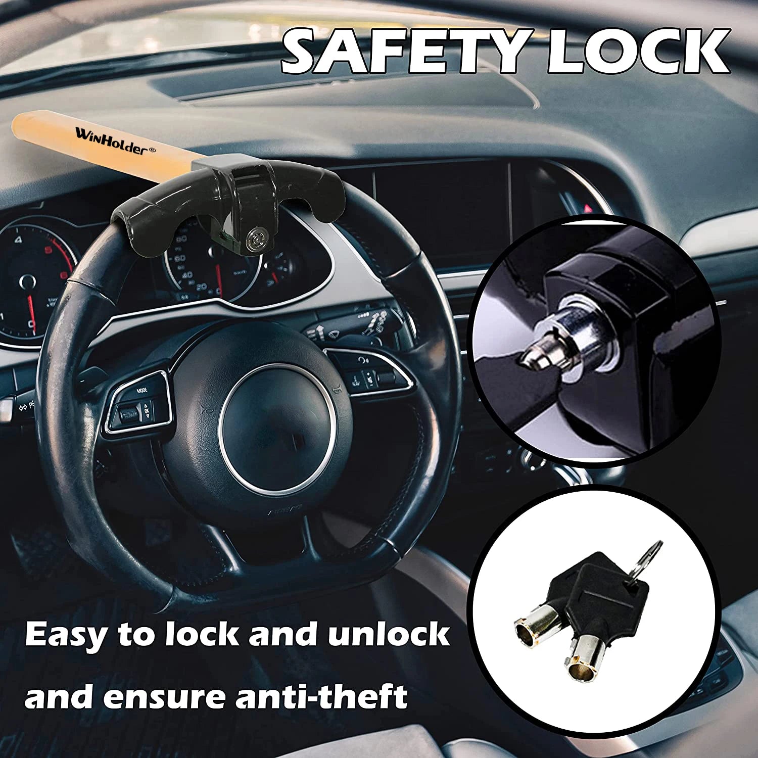 Bloqueo universal para volante de coche - Inmovilizador antirrobo de alta seguridad con barra en T