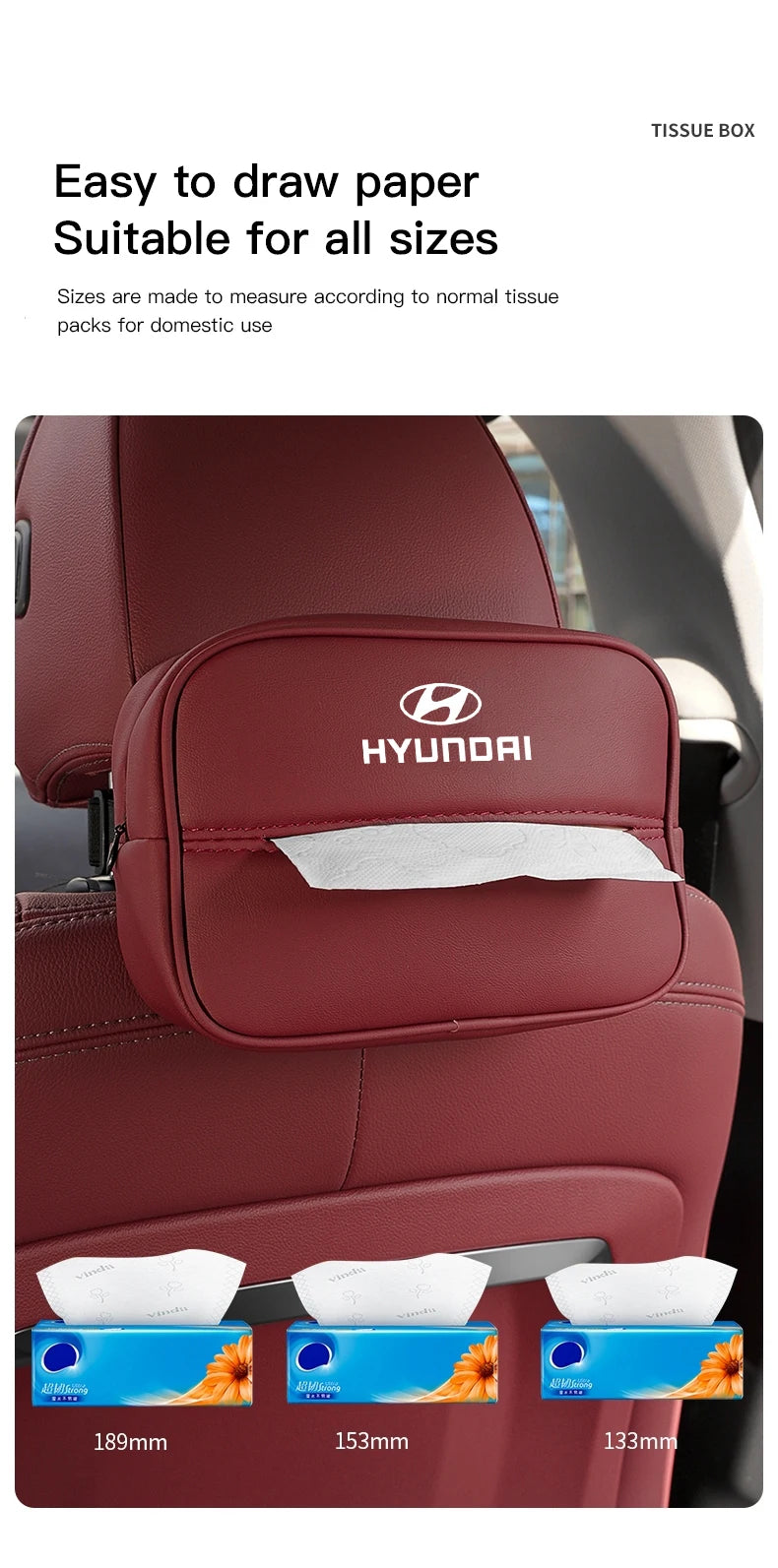 Elevate your Hyundai experience with this intelligently designed tissue storage box.
