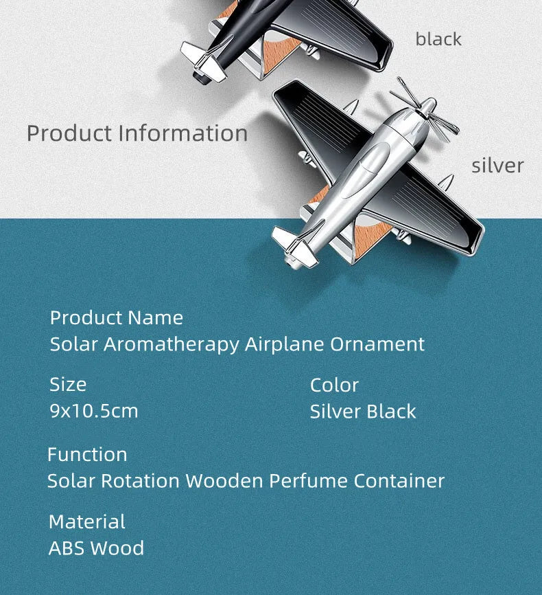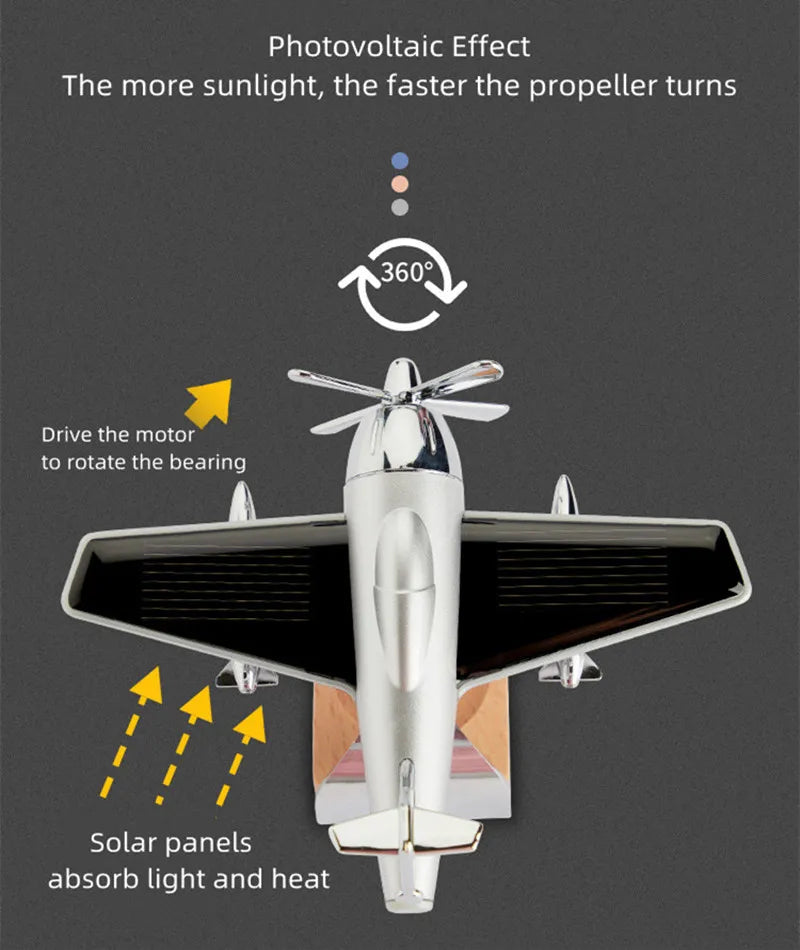 Décoration d'avion d'aromathérapie à énergie solaire pour voiture - Décoration de tableau de bord
