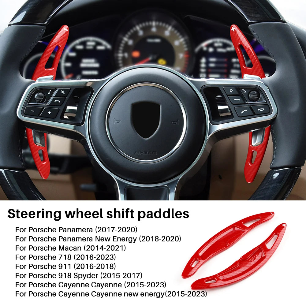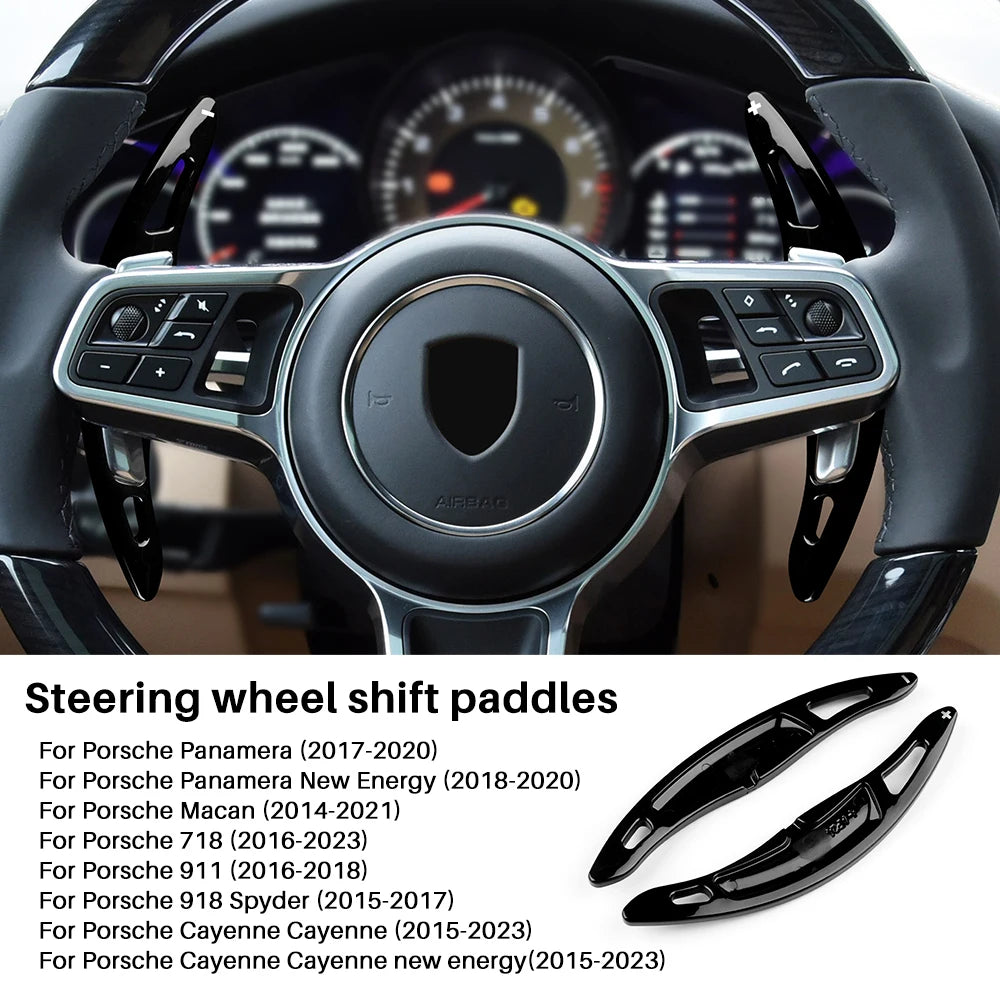 Enhance functionality and aesthetics with this premium ABS Car Steering Wheel Paddle Shifter Cover. Designed for Porsche Panamera, Macan, Cayenne, 718, and 911, it offers: