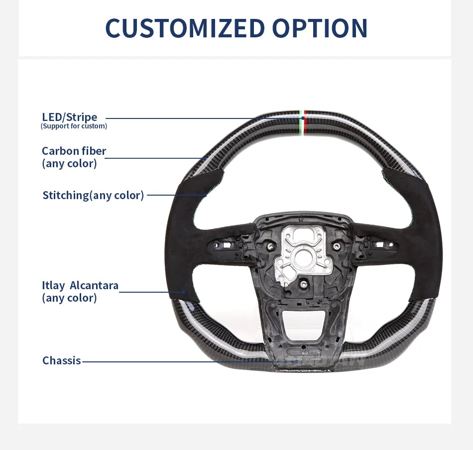Upgrade your 2018 Lamborghini Urus with this premium carbon fiber steering wheel. 🇮🇹 Crafted in Italy, it features genuine Alcantara leather for superior grip, lightweight carbon fiber for optimal handling, and precision-engineered controls for seamless electronic integration.